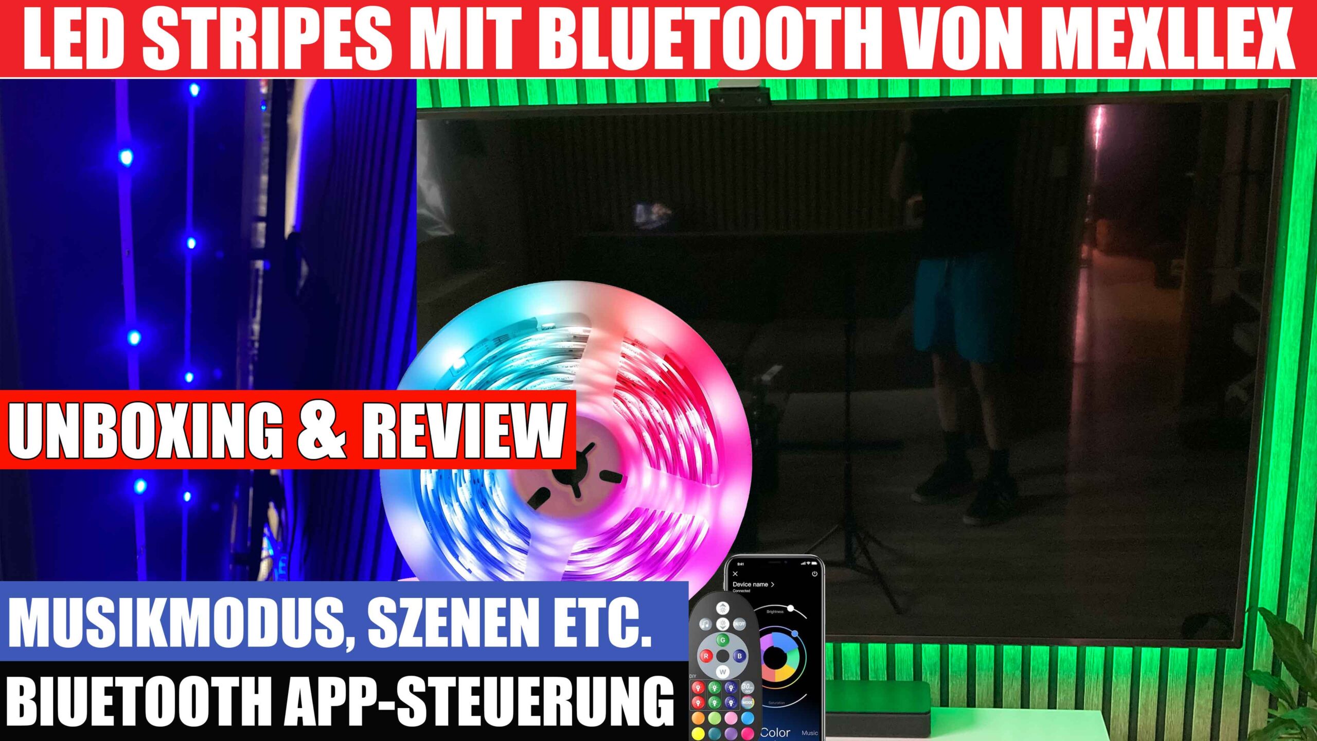 Im Paket enthalten sind 10 Meter LED-Streifen, eine IR-Fernbedienung, ein Netzteil und ein Handbuch. Die Steuerung der Beleuchtung erfolgt bequem per Fernbedienung oder per Bluetooth-App, was die Bedienung sehr flexibel macht. Besonders positiv ist die hohe Reichweite des Bluetooth-Empfängers, der auch für größere Wohnungen geeignet ist.