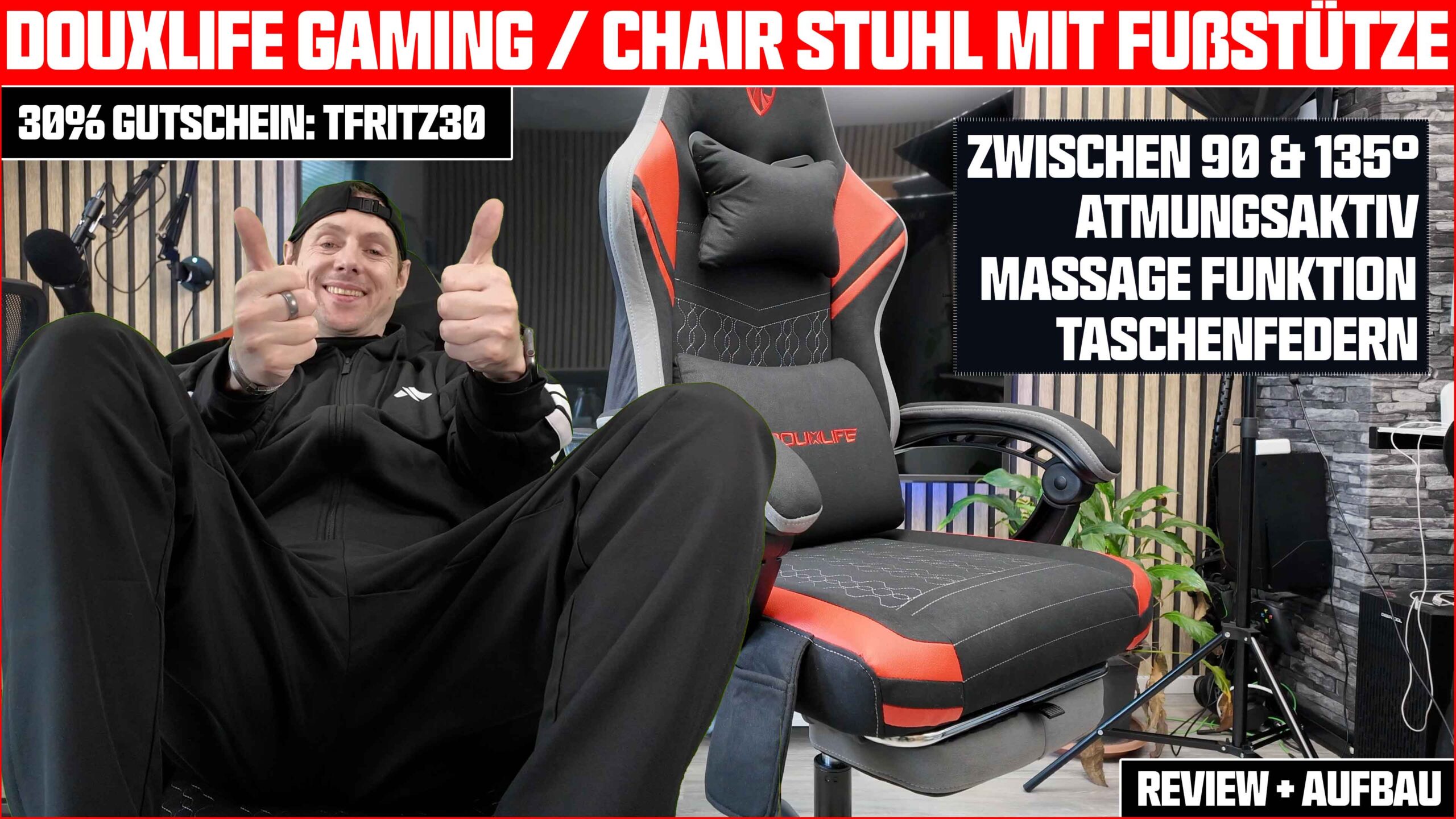 Mit dem Rabattcode TFRITZ30 gibt es den Douxlife Gaming Stuhl um 30% günstiger bei Amazon.